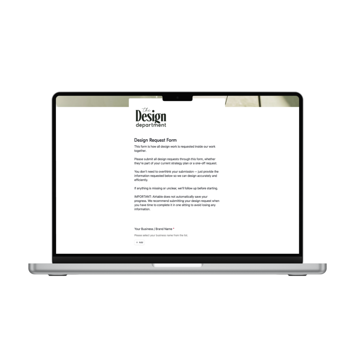 The Design Department is intentionally structured so you always know what you’re getting and where everything lives. No guessing, no vague “design support” — just clear deliverables, every month.